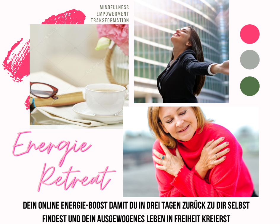 Wie Du zurück in deine Kraft findest, zeige ich im „Energie-Retreat“, meinem 3-teiligen wertvollen Onlinetraining im Wert von 397 Euro.